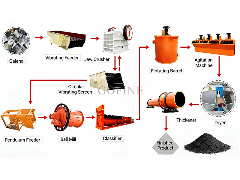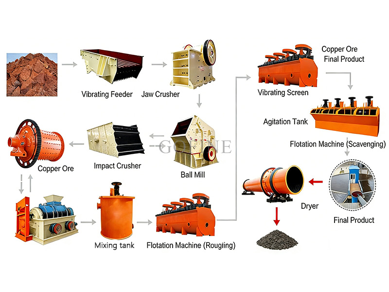 The raw ore is coarsely/mediumly crushed by jaw crushers and cone crushers, and then classified by vibrating screens to control the feed particle size (usually ≤50mm).